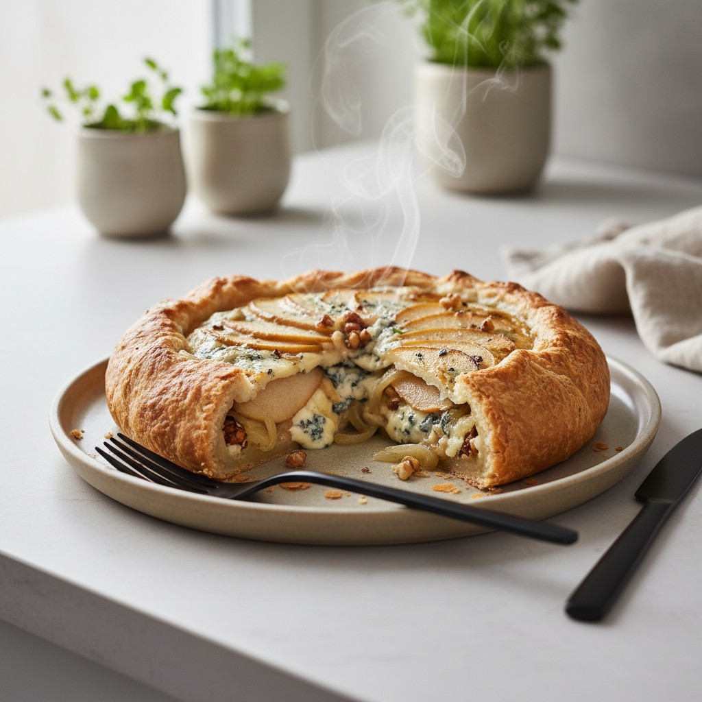 Cette tourte associe la douceur des poires à la puissance du fromage bleu, le tout enveloppé dans une pâte feuilletée croustillante. Une recette d’inspiration rustique, parfaite pour un repas convivial ou une entrée raffinée.