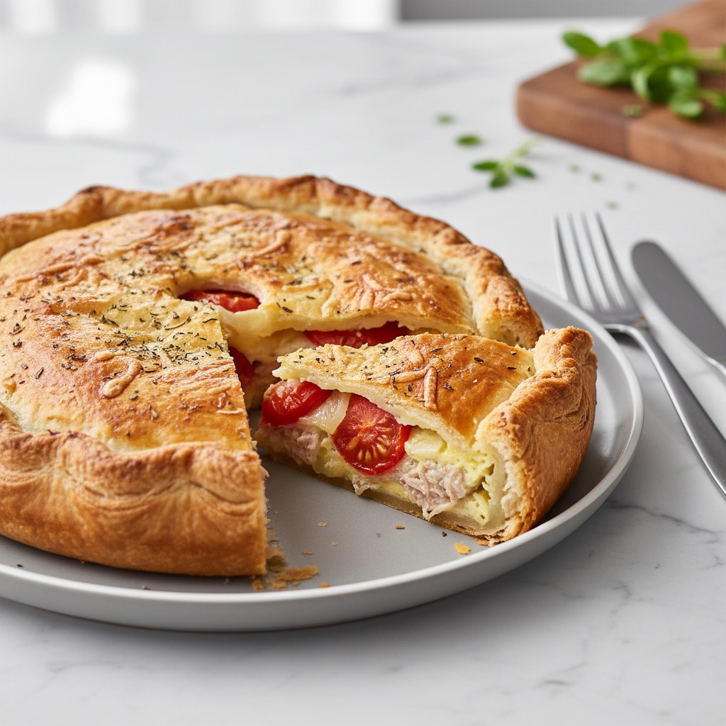 Cette tourte au thon et tomates est une recette simple et savoureuse, idéale pour un repas convivial ou un pique-nique. Inspirée des saveurs méditerranéennes, elle combine la douceur des tomates avec la richesse du thon, le tout enveloppé dans une pâte croustillante. Une option équilibrée et adaptable pour toute la famille.
