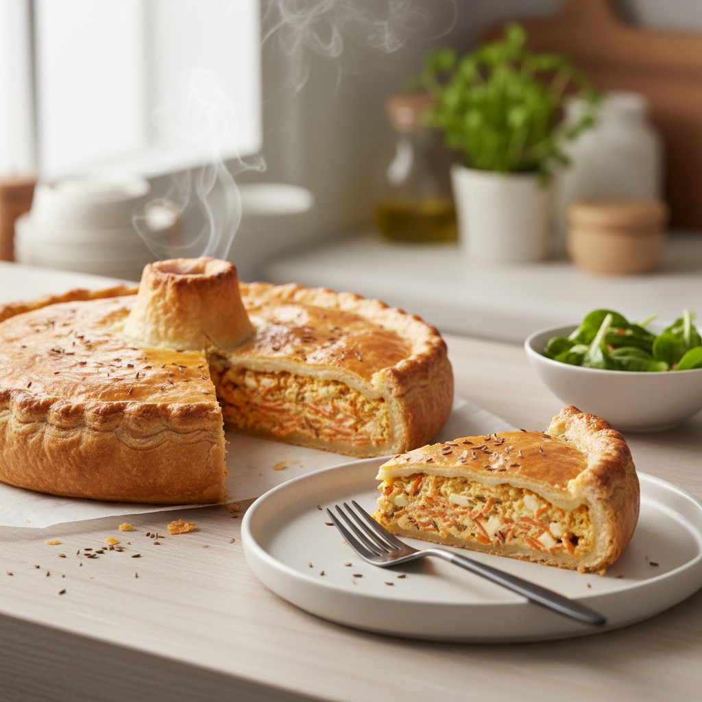 Cette tourte aux carottes et cumin est une recette simple et savoureuse, idéale pour un repas végétarien ou une entrée originale. Inspirée des saveurs orientales, elle marie la douceur des carottes à la chaleur subtile du cumin, le tout enveloppé dans une pâte croustillante. Une option saine et équilibrée, parfaite pour toute occasion.