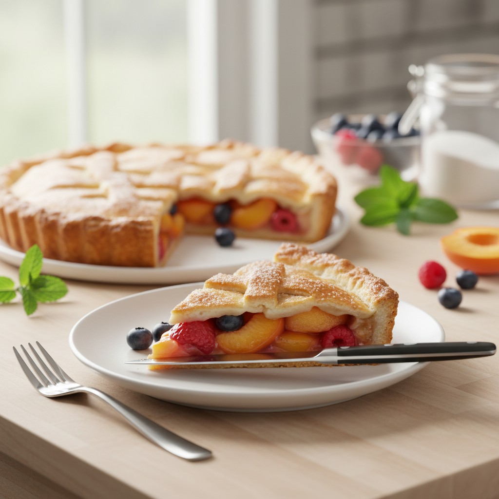 Cette tourte aux fruits d’été met en valeur la fraîcheur et la douceur des fruits de saison comme les pêches, les abricots et les baies. Parfaite pour un dessert convivial ou un goûter, elle allie une pâte croustillante et une garniture juteuse. Une recette simple à réaliser, idéale pour profiter des saveurs estivales.