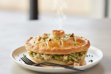 - Battez le jaune d’œuf avec une cuillère à soupe d’eau et badigeonnez la surface de la tourte à l’aide d’un pinceau. Enfournez pendant 35 minutes, ou jusqu’à ce que la tourte soit bien dorée et croustillante.