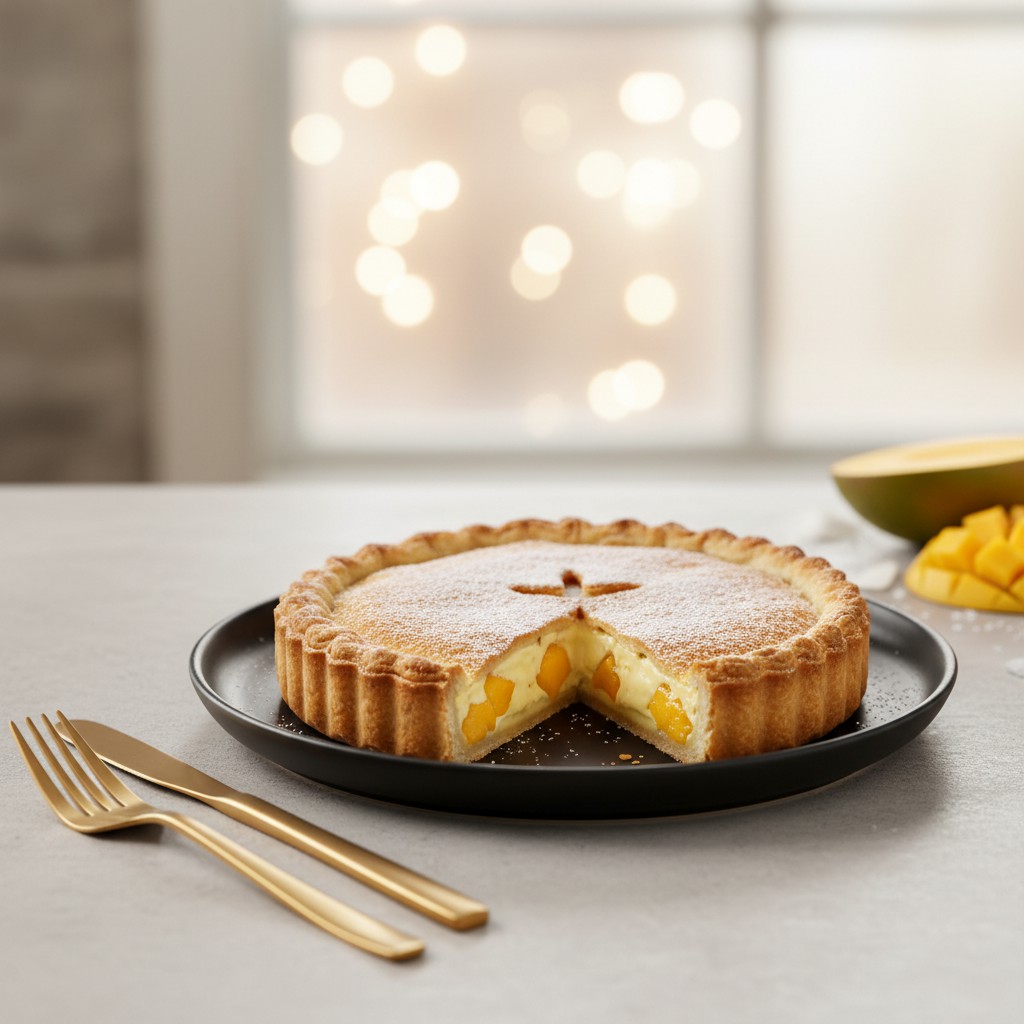 Cette tourte au lait de coco et mangue est une recette d’inspiration tropicale, parfaite pour un dessert léger et fruité. La douceur du lait de coco se marie harmonieusement avec la saveur sucrée et acidulée de la mangue, le tout dans une pâte croustillante. Une recette simple à réaliser, idéale pour impressionner vos convives.