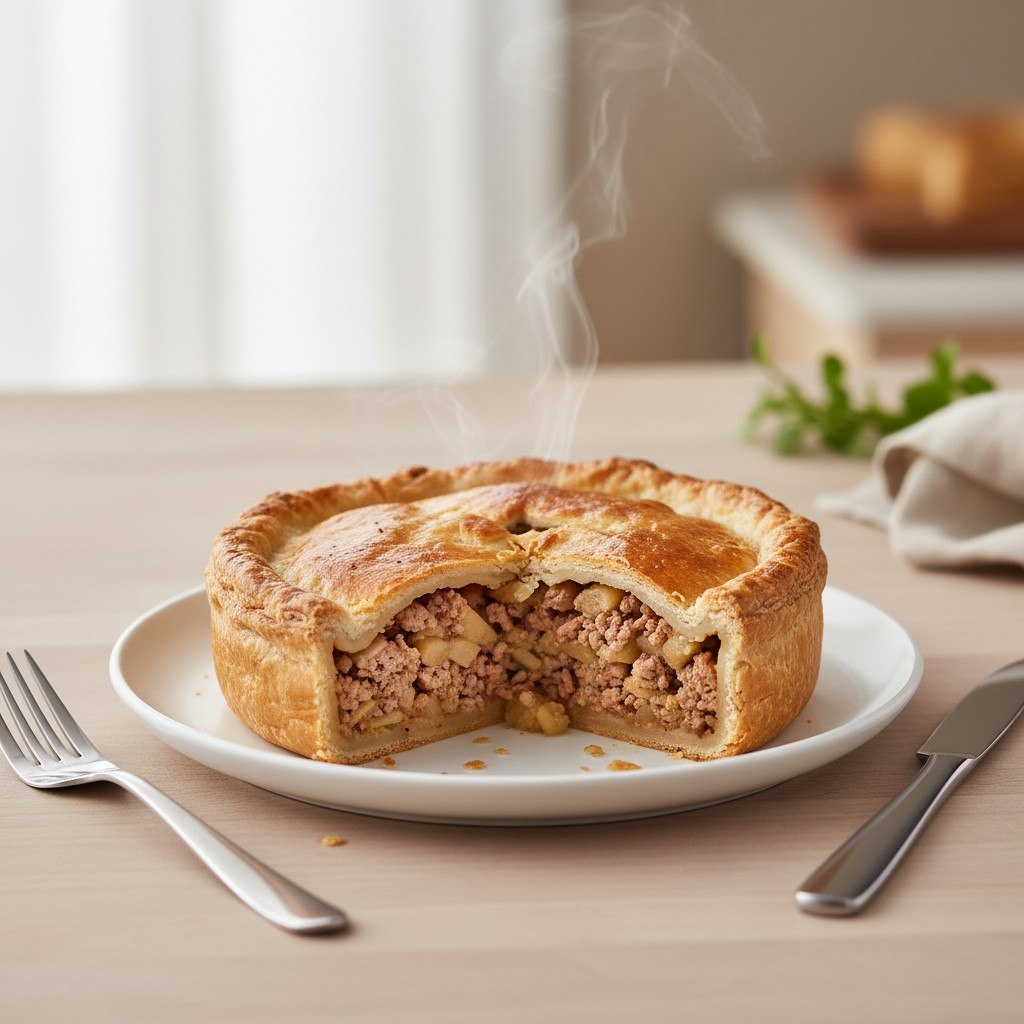 Cette tourte associe la tendreté de la viande de porc à la douceur légèrement acidulée des pommes, le tout enveloppé dans une pâte dorée et croustillante. Inspirée des traditions culinaires rustiques, elle est parfaite pour un repas réconfortant et équilibré.
