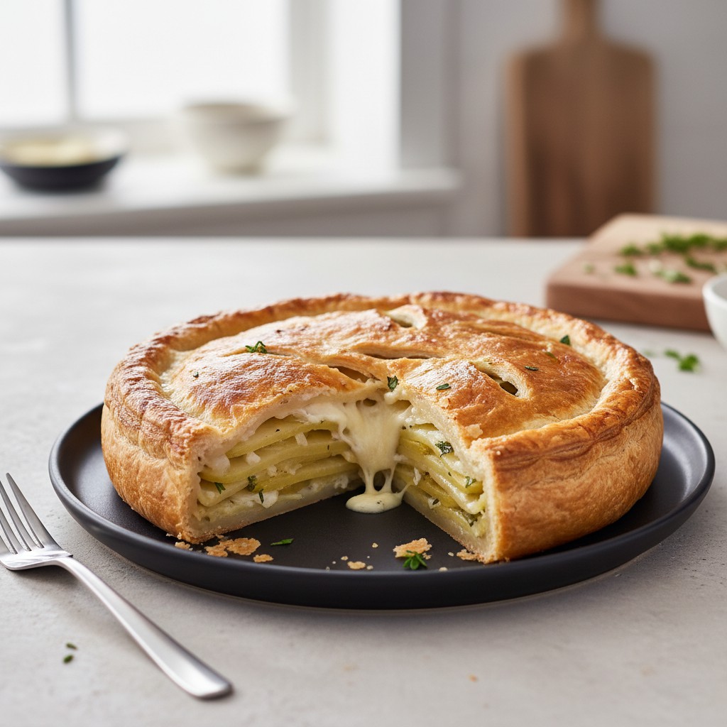 Cette tourte aux pommes de terre et au fromage est un plat réconfortant et généreux, parfait pour un repas convivial. Inspirée des traditions culinaires françaises, elle allie la douceur des pommes de terre à la richesse du fromage fondu, le tout enveloppé dans une pâte dorée et croustillante.