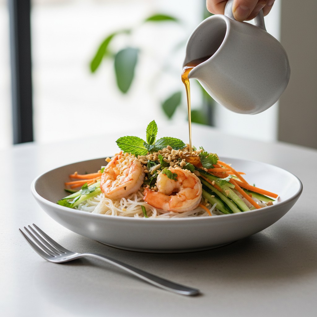 Découvrez une recette vietnamienne authentique et équilibrée : des vermicelles de riz accompagnés de crevettes sautées et d’une sauce nuoc-mâm maison. Ce plat léger et savoureux est parfait pour un repas rapide et sain, tout en offrant une explosion de saveurs asiatiques.
