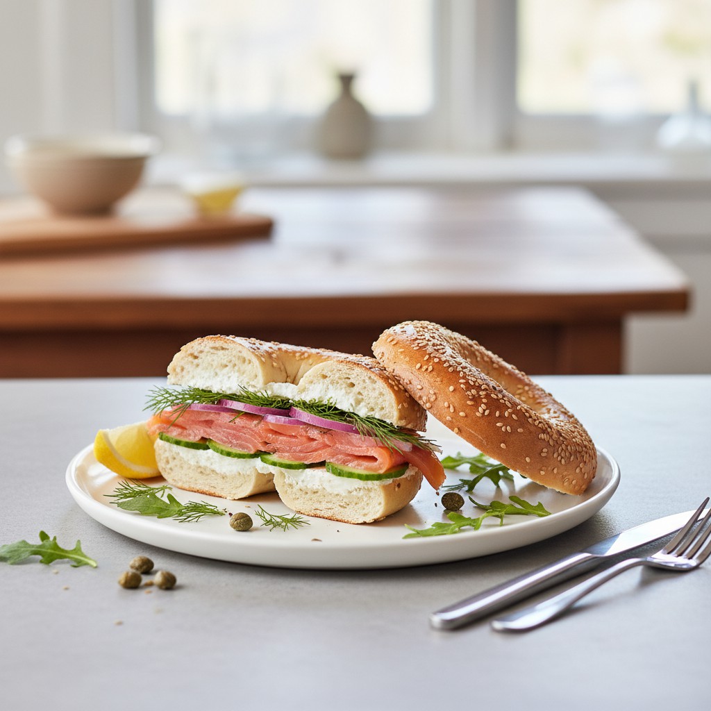 Le bagel au saumon fumé est un classique new-yorkais, né de la rencontre entre la tradition juive ashkénaze du pain en anneau et l’abondance de produits de la mer. Ce sandwich iconique séduit par son équilibre entre la douceur du pain moelleux, la fraîcheur du fromage à la crème, le caractère iodé du saumon fumé et le croquant des garnitures. Idéal pour un brunch, un déjeuner rapide ou un repas convivial, il offre une expérience gustative complète, à la fois gourmande et équilibrée. Cette recette met l’accent sur la justesse des textures, la qualité des ingrédients et la maîtrise de l’assemblage pour garantir un résultat authentique et savoureux, même sans matériel professionnel.