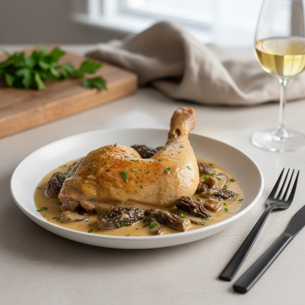 Le coq au vin jaune est un plat emblématique du Jura, alliant la puissance aromatique du vin jaune à la finesse de la volaille. Cette recette, héritière des traditions franc-comtoises, met en valeur la richesse du terroir grâce à l’association du coq (ou d’un bon poulet fermier) et des morilles. Le vin jaune, rare et précieux, confère une profondeur unique, tandis que la cuisson lente garantit une chair moelleuse et des saveurs concentrées. Ce plat, convivial et authentique, est un incontournable pour les amateurs de cuisine française raffinée, tout en restant accessible à qui respecte les gestes essentiels. Il s’agit d’une recette où la patience et la précision font toute la différence, et où chaque étape a son importance pour obtenir une sauce onctueuse et parfumée.