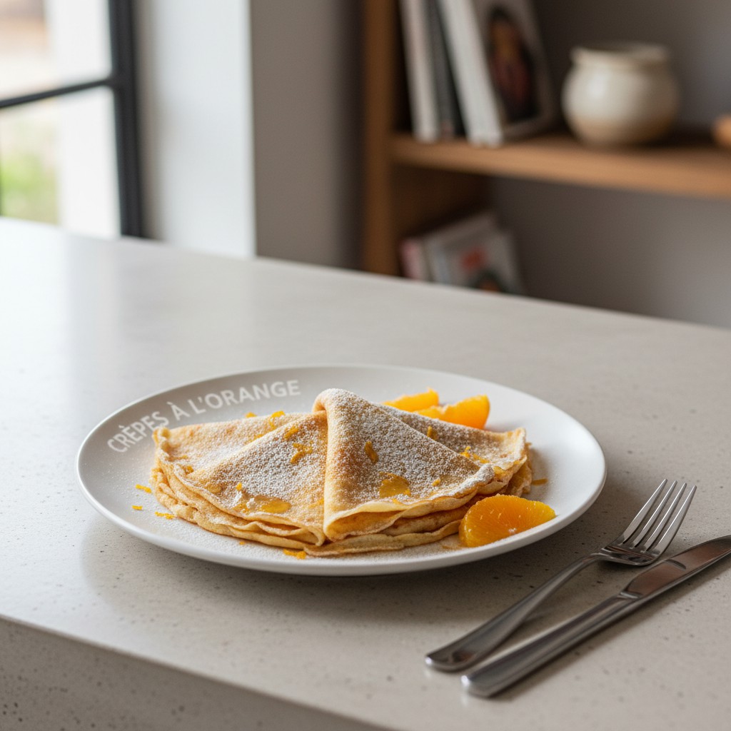 - Disposez les crêpes sur une assiette, recouvrez d’un linge propre pour les garder moelleuses. Au moment de servir, pliez les crêpes en quatre, arrosez-les d’un filet de jus d’orange frais (optionnel), puis saupoudrez généreusement de sucre glace à l’aide d’une passoire fine. Servez immédiatement pour profiter du contraste chaud-froid.