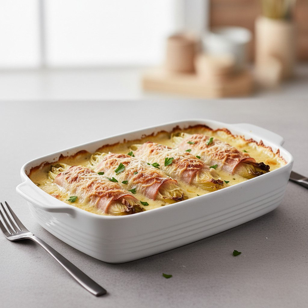 Plat emblématique de la cuisine familiale du nord de la France, les endives au jambon allient la douceur légèrement amère de l’endive braisée à la gourmandise du jambon et à la richesse d’une sauce béchamel gratinée. Cette recette, née de la tradition populaire, est appréciée pour sa simplicité, son équilibre nutritionnel (fibres, protéines, calcium) et sa capacité à réconcilier petits et grands avec l’endive. Elle met en valeur la cuisson juste de l’endive pour éviter l’amertume, l’onctuosité d’une béchamel maison et l’art du gratin doré. Idéale pour un repas complet, accessible et authentique.