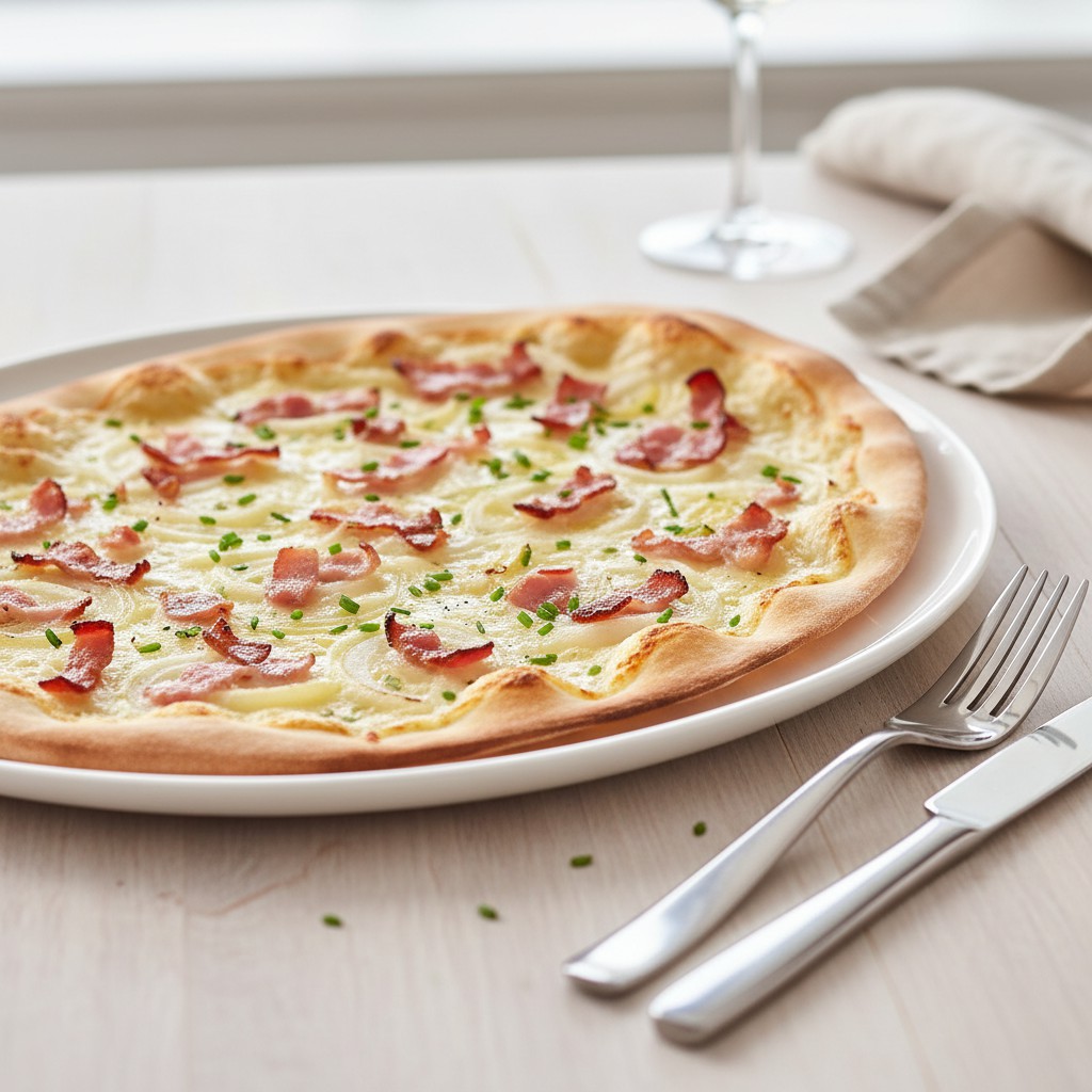 - Pâte trop épaisse : Abaissez la pâte le plus finement possible (2 mm), sinon la flammekueche sera lourde et manquera de croustillant.