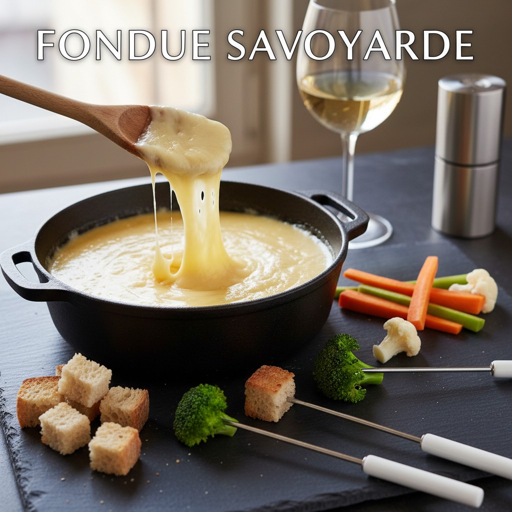 La fondue savoyarde est un plat convivial emblématique des Alpes françaises, où le fromage fondu devient le centre d’un repas chaleureux et partagé. Traditionnellement composée de plusieurs fromages locaux (Comté, Beaufort, Emmental), elle offre une texture onctueuse et un goût riche, relevé d’une pointe d’ail et de vin blanc sec. Ce plat, né dans les montagnes pour valoriser les fromages affinés, est aussi un excellent exemple d’équilibre nutritionnel lorsqu’il est accompagné de pain complet, de légumes croquants et consommé avec modération. La réussite de la fondue repose sur la qualité des fromages, la maîtrise de la fonte et l’attention portée à la texture finale.
