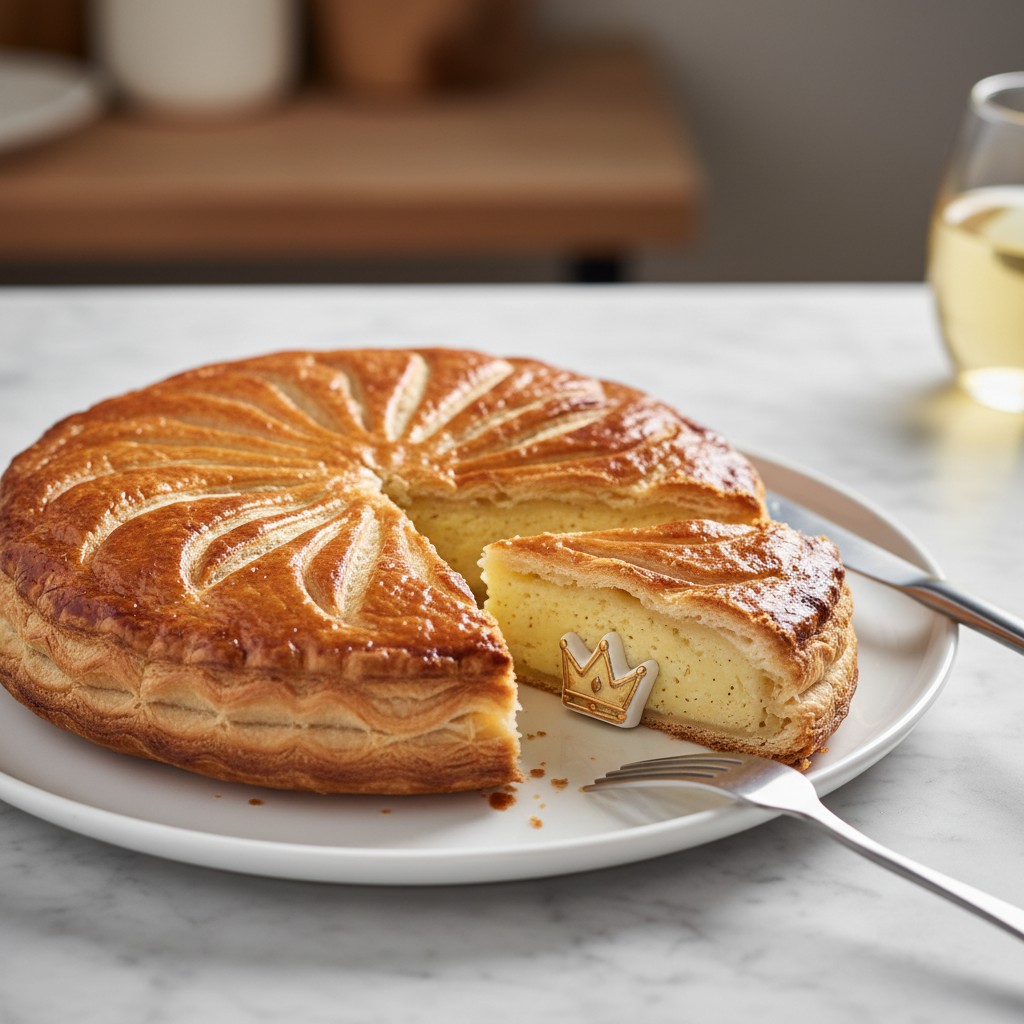La galette des rois, emblème de l’Épiphanie en France, est une pâtisserie feuilletée garnie de frangipane, une crème riche à base d’amandes. Sa texture croustillante contraste avec le moelleux de la garniture, offrant un équilibre subtil entre gourmandise et tradition. Cette recette met l’accent sur la maîtrise du feuilletage, la justesse de la crème d’amandes et l’importance de la cuisson pour obtenir une galette dorée, parfumée et digeste. Elle s’adresse à ceux qui souhaitent réussir une galette authentique, sans compromis sur le goût ni la technique, tout en comprenant les gestes clés pour éviter les pièges classiques. La galette des rois trouve ses origines dans les célébrations païennes du solstice d’hiver, avant d’être associée à la fête chrétienne de l’Épiphanie. La fève cachée à l’intérieur désigne le roi ou la reine du jour, perpétuant une tradition conviviale et festive.