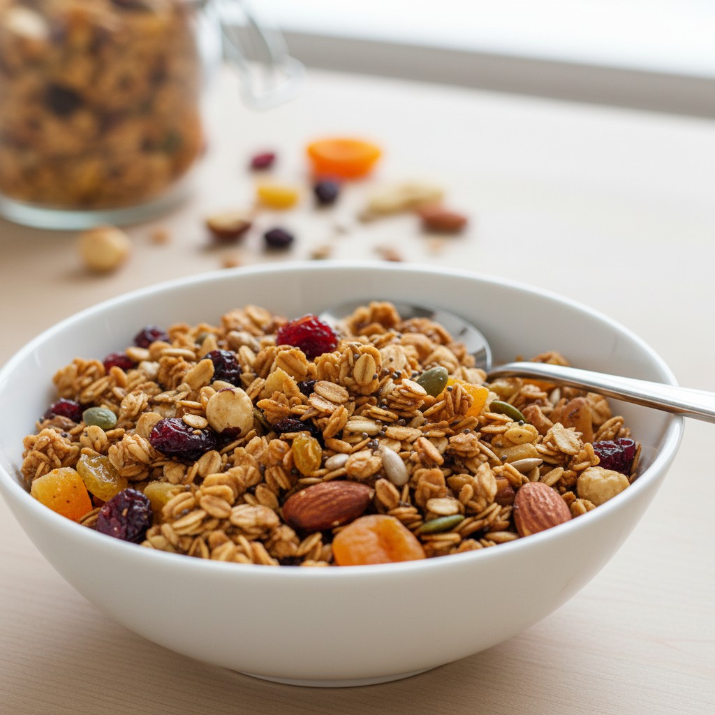 - Granola trop sucré ou trop gras : Respectez les proportions, n’ajoutez pas plus de miel ou d’huile que nécessaire. Vous pouvez réduire légèrement selon vos goûts.