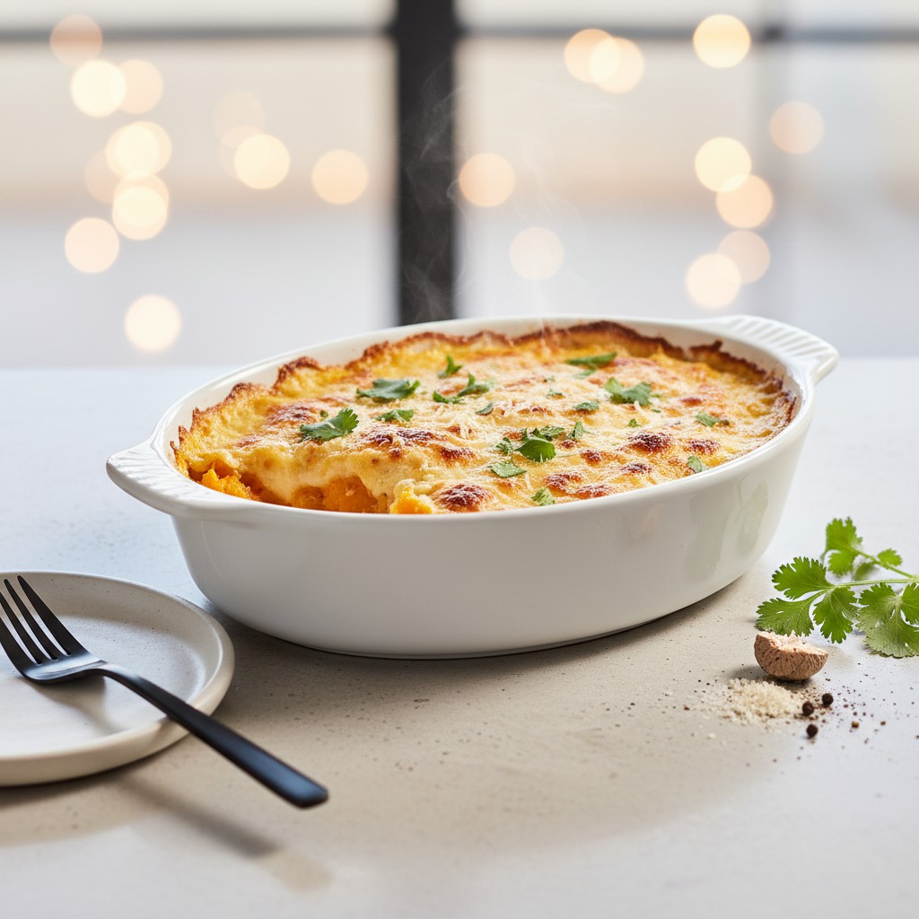 Ce gratin de potiron et lait de coco marie la douceur du potiron à la rondeur exotique du lait de coco, pour un plat végétarien réconfortant, équilibré et accessible. Originaire d’une tradition de cuisine fusion, il s’inspire des gratins français tout en intégrant des saveurs d’Asie du Sud-Est. Sa texture fondante et sa croûte dorée séduisent autant les amateurs de plats sains que les curieux de nouvelles associations. Ce gratin est idéal pour varier des classiques, apporter des fibres, des vitamines et des acides gras insaturés, tout en restant digeste et facile à préparer. Il met en valeur la simplicité des ingrédients sans sacrifier le goût ni la nutrition.
