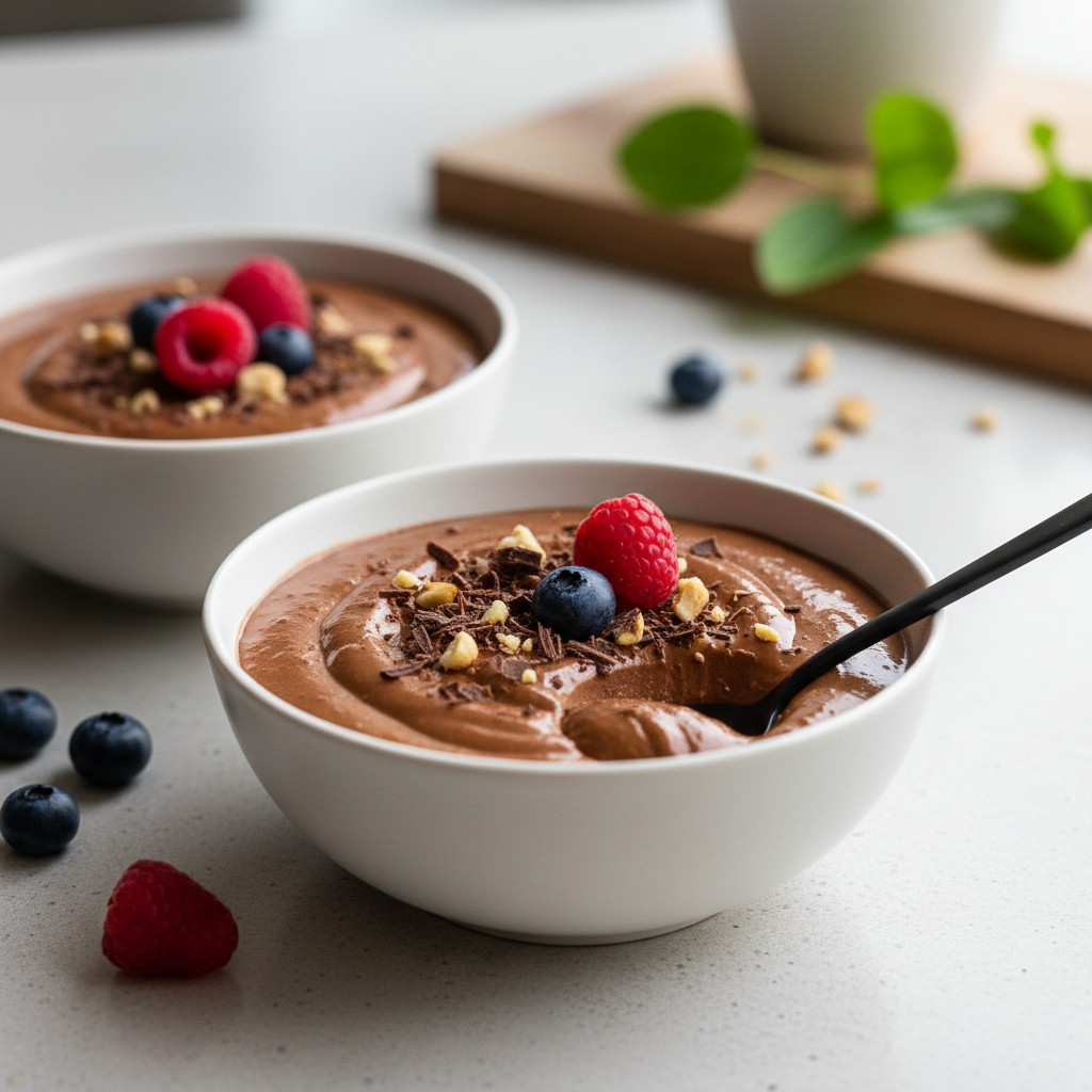 Cette mousse de tofu soyeux au cacao et avocats est une alternative végétale à la mousse au chocolat classique, alliant onctuosité, richesse aromatique et équilibre nutritionnel. L’avocat apporte une texture crémeuse sans goût dominant, tandis que le tofu soyeux assure la légèreté et la tenue. Cette recette, inspirée des tendances végétaliennes et de la cuisine santé, permet de savourer un dessert gourmand, sans œufs ni produits laitiers, tout en profitant de bons acides gras et de protéines végétales. Idéale pour les curieux, les intolérants ou ceux qui souhaitent varier leur répertoire sucré, elle se prépare rapidement et se personnalise facilement.