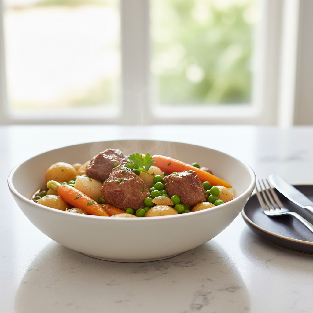 - Couvrez et laissez mijoter à feu doux 1h15. La viande doit devenir fondante sans se défaire. Pendant ce temps, faites revenir les carottes et navets dans le reste du beurre à la poêle pour les colorer légèrement (optionnel mais valorise leur goût).