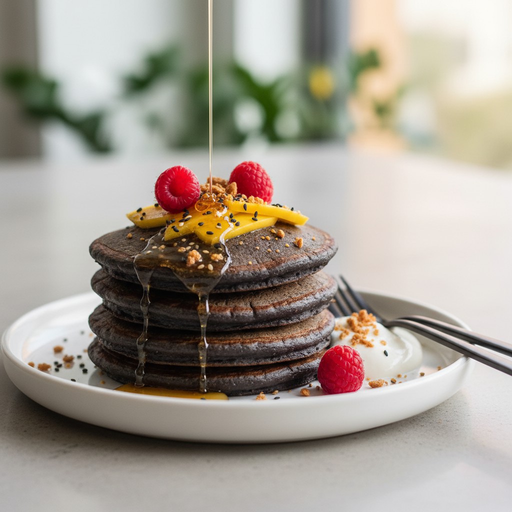 Ces pancakes au sésame noir allient la douceur moelleuse des pancakes traditionnels à la saveur profonde et légèrement grillée du sésame noir. Inspirés des saveurs d’Asie de l’Est, où la pâte de sésame noir est couramment utilisée en pâtisserie, ils offrent une alternative originale et nutritive au petit-déjeuner ou au brunch. Riches en calcium, en fibres et en bonnes graisses, ils se distinguent par leur couleur sombre et leur goût unique, tout en restant accessibles à réaliser chez soi. Cette recette met l’accent sur l’équilibre entre gourmandise et bienfaits nutritionnels, sans sacrifier la texture ni la simplicité d’exécution.