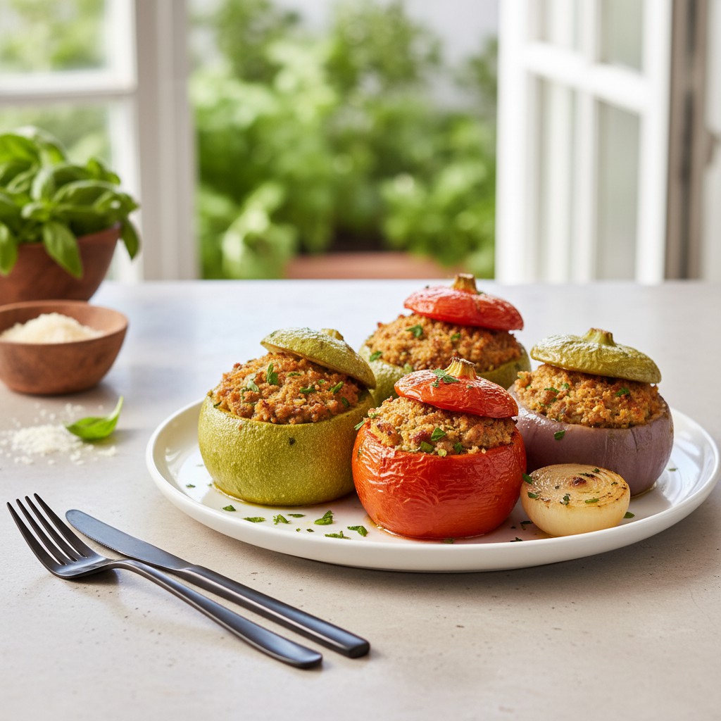 - La farce est sèche : Ne tassez pas trop la farce dans les légumes, ajoutez un peu de lait ou d’huile d’olive si elle semble trop compacte avant de farcir.