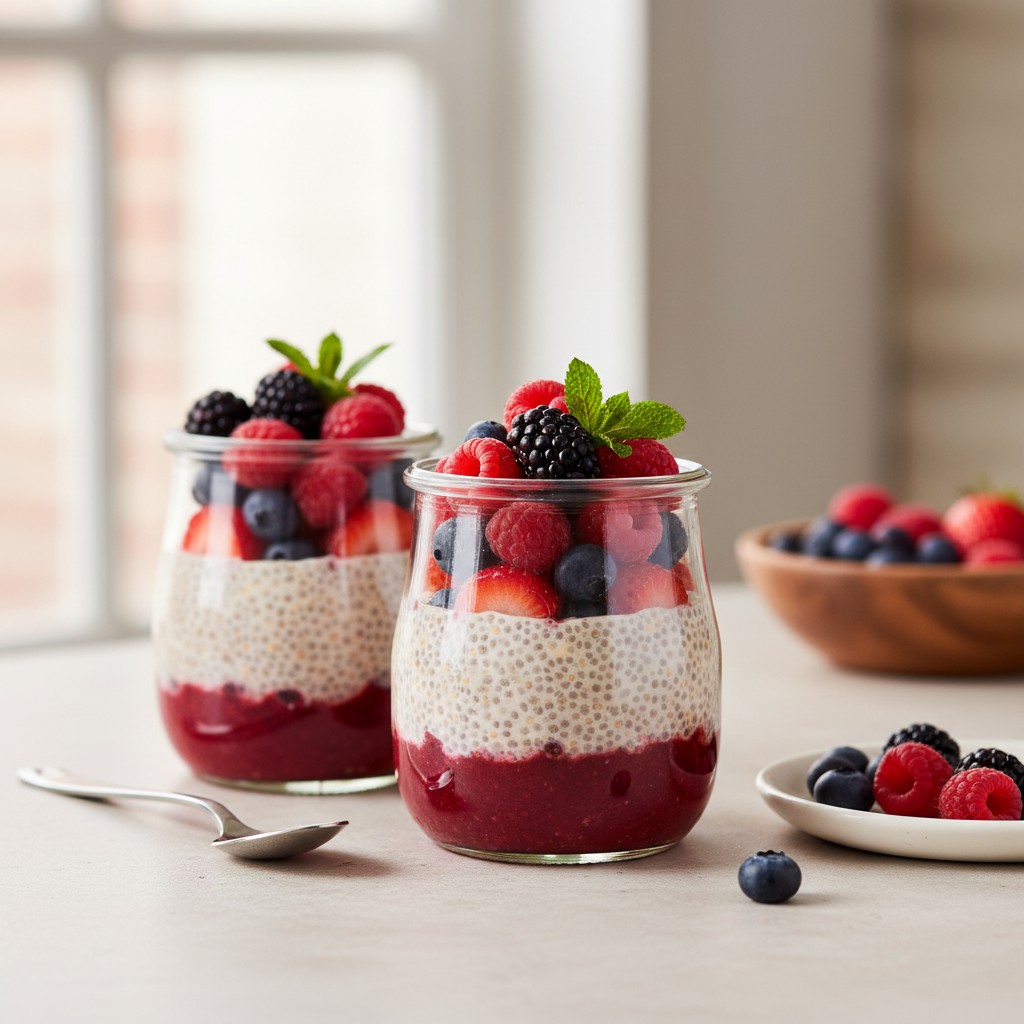 Le pudding de chia aux fruits rouges est une préparation d’origine récente, popularisée par la vague du « healthy food » et du petit-déjeuner nutritif. Il associe la texture unique des graines de chia, qui gonflent au contact d’un liquide, à la fraîcheur acidulée des fruits rouges. Ce dessert ou petit-déjeuner, naturellement sans gluten et riche en fibres, oméga-3 et antioxydants, séduit par sa simplicité, sa versatilité et son équilibre nutritionnel. Il s’adapte à de nombreux régimes (végétarien, végétalien, sans lactose) et permet de varier les plaisirs selon les saisons. L’astuce réside dans la bonne hydratation des graines et l’équilibre entre crémeux et fraîcheur fruitée.