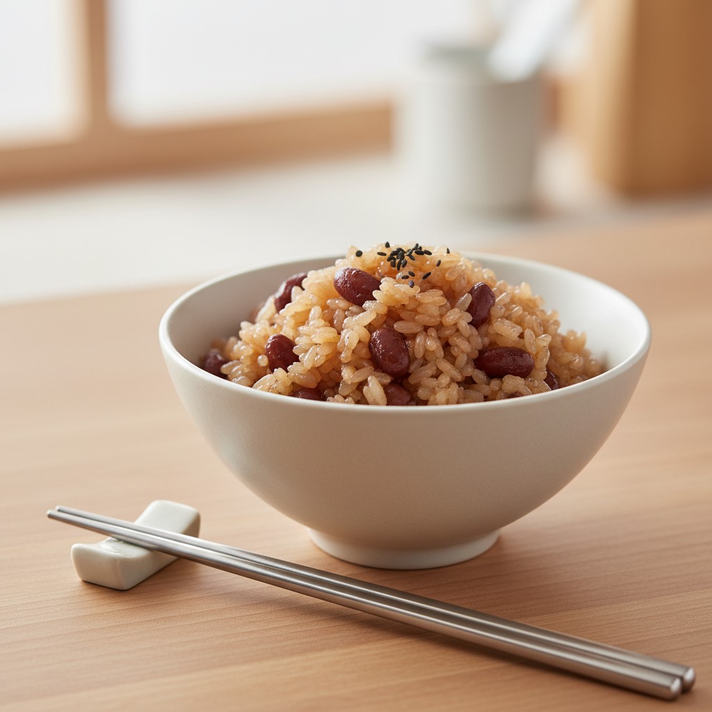Le riz sucré aux haricots rouges, aussi appelé « sekihan » au Japon, est un plat traditionnel servi lors des célébrations et des jours heureux. Il associe la douceur naturelle du riz gluant à la texture fondante des haricots azuki, légèrement sucrés et subtilement salés. Cette recette, emblématique de la cuisine japonaise, met en avant la simplicité des ingrédients et l’équilibre nutritionnel : glucides complexes, fibres et protéines végétales. Accessible à tous, elle ne nécessite ni technique complexe ni ingrédient gadget, mais demande de la rigueur dans la cuisson pour obtenir la texture parfaite. C’est une excellente introduction à la cuisine japonaise authentique, à la fois rassasiante, digeste et naturellement sans gluten.
