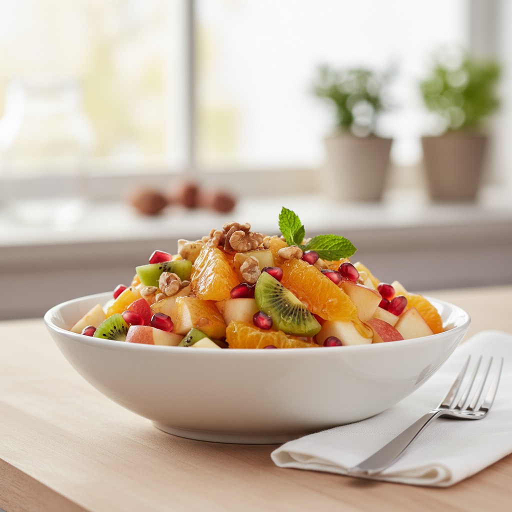La salade de fruits d’hiver au miel est une composition colorée et équilibrée, idéale pour profiter des saveurs de saison tout en faisant le plein de vitamines. Ce dessert, à la fois simple et raffiné, met en valeur les fruits hivernaux (agrumes, pommes, poires, kiwi, grenade) relevés d’un filet de miel et d’une touche de citron. Traditionnellement servie en fin de repas ou au petit-déjeuner, elle s’inspire des salades de fruits méditerranéennes, où l’on valorise la fraîcheur et la simplicité. L’association du miel et des agrumes apporte douceur et vivacité, tout en respectant l’équilibre nutritionnel. Accessible à tous, cette recette ne nécessite aucune technique complexe mais requiert précision dans la découpe et attention à l’assaisonnement pour révéler toute la palette aromatique des fruits.