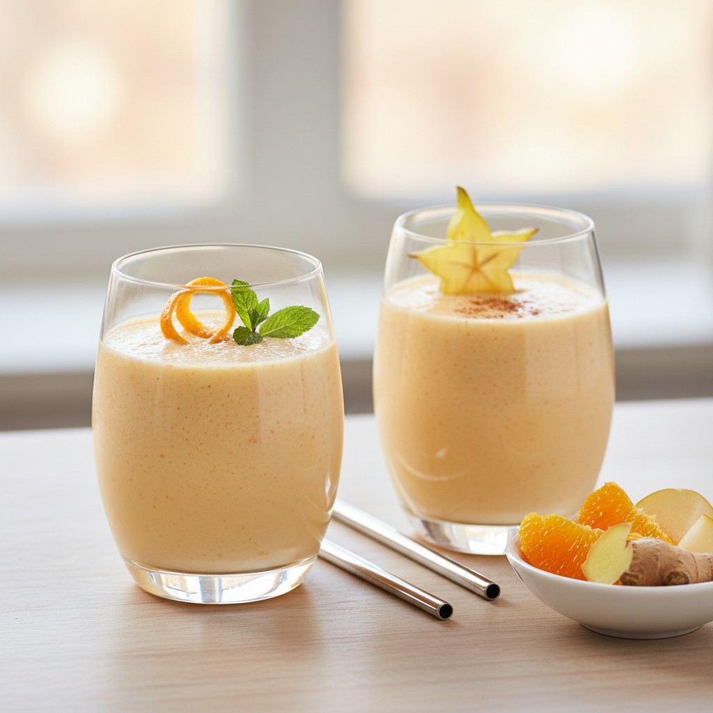 Ce smoothie aux fruits d’hiver met à l’honneur les saveurs de la saison froide : agrumes, poires, pommes et banane, relevés d’une touche de gingembre frais. Riche en vitamines, il offre une texture onctueuse et une fraîcheur acidulée, idéale pour renforcer l’immunité et varier les plaisirs en dehors des classiques smoothies estivaux. Cette recette, d’inspiration contemporaine, valorise les fruits locaux et de saison, tout en restant accessible et rapide à réaliser. Elle s’inscrit dans la tradition des boissons santé hivernales, appréciées pour leur apport nutritionnel et leur simplicité.