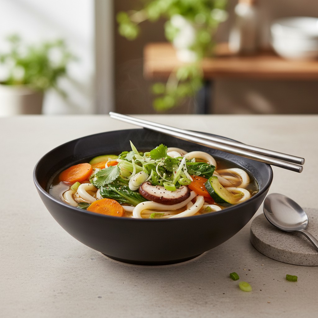La soupe de légumes à l’udon est un plat réconfortant d’origine japonaise, associant la douceur des nouilles épaisses udon à un bouillon parfumé et des légumes de saison. Cette recette met en avant l’équilibre entre textures (croquant des légumes, moelleux des nouilles) et saveurs (umami du bouillon, fraîcheur des herbes). Elle est idéale pour un repas complet, digeste et nourrissant, tout en restant accessible à réaliser à la maison. Traditionnellement, l’udon est un symbole de convivialité et de simplicité dans la cuisine japonaise, parfait pour découvrir l’art du bouillon et l’assemblage harmonieux des ingrédients.