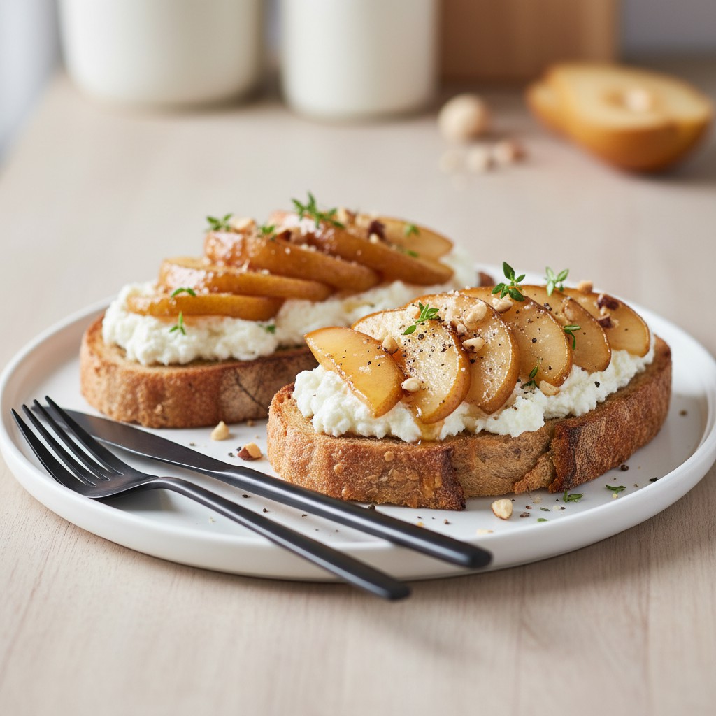 La tartine de ricotta et poires caramélisées marie la douceur fondante de la poire, la fraîcheur crémeuse de la ricotta et le croustillant du pain grillé. Cette recette, inspirée des traditions italiennes de la tartine gourmande, offre un équilibre subtil entre sucré et salé, parfait pour un brunch raffiné ou une entrée originale. Accessible et rapide, elle met en valeur des ingrédients simples sans sacrifier la gourmandise ni l’équilibre nutritionnel. L’association poire-fromage est un classique intemporel, ici modernisé par la caramélisation et une touche de poivre ou d’herbes fraîches.