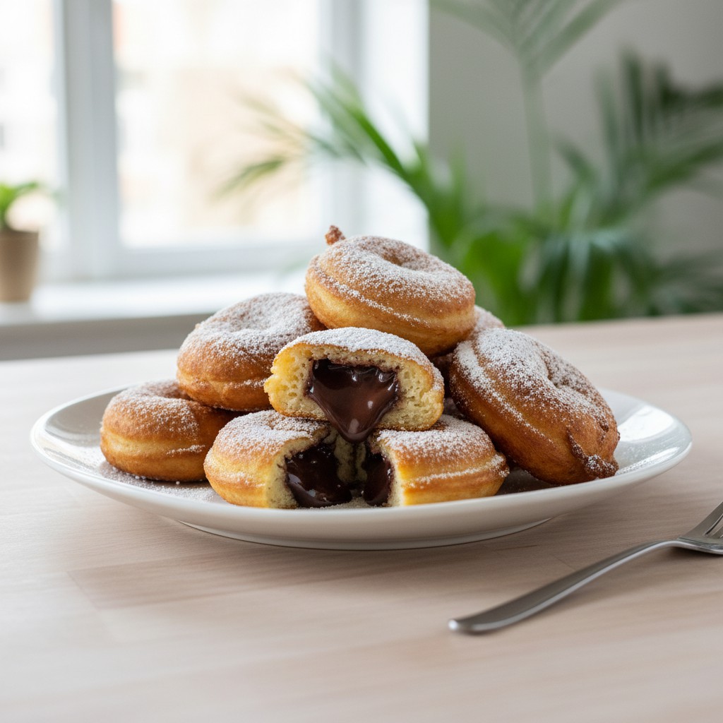 - Saupoudrez de sucre glace juste avant de servir, si désiré. Dégustez tiède pour profiter du chocolat fondant. Pour une version plus légère, vous pouvez cuire les beignets au four à 200°C (12-15 min), mais la texture sera moins croustillante.