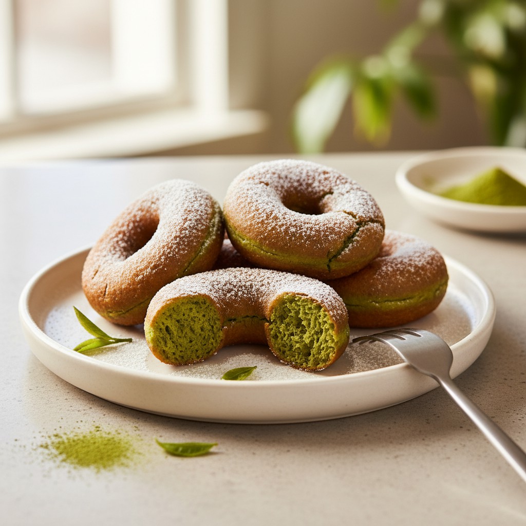 - Astuces de chef : Pour une version plus légère, vous pouvez cuire les beignets au four (180°C, 12-15 min) après les avoir badigeonnés d’un peu de lait, mais la texture sera moins fondante. Pour un goût plus intense, augmentez légèrement la dose de matcha, mais attention à l’amertume. Pour une version vegan, remplacez les œufs par 80 g de compote de pomme et le beurre par de l’huile neutre.