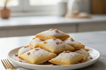 - Égouttez les beignets sur du papier absorbant. Saupoudrez de sucre glace et, si désiré, parsemez d’amandes effilées légèrement torréfiées. Servez tiède ou à température ambiante.