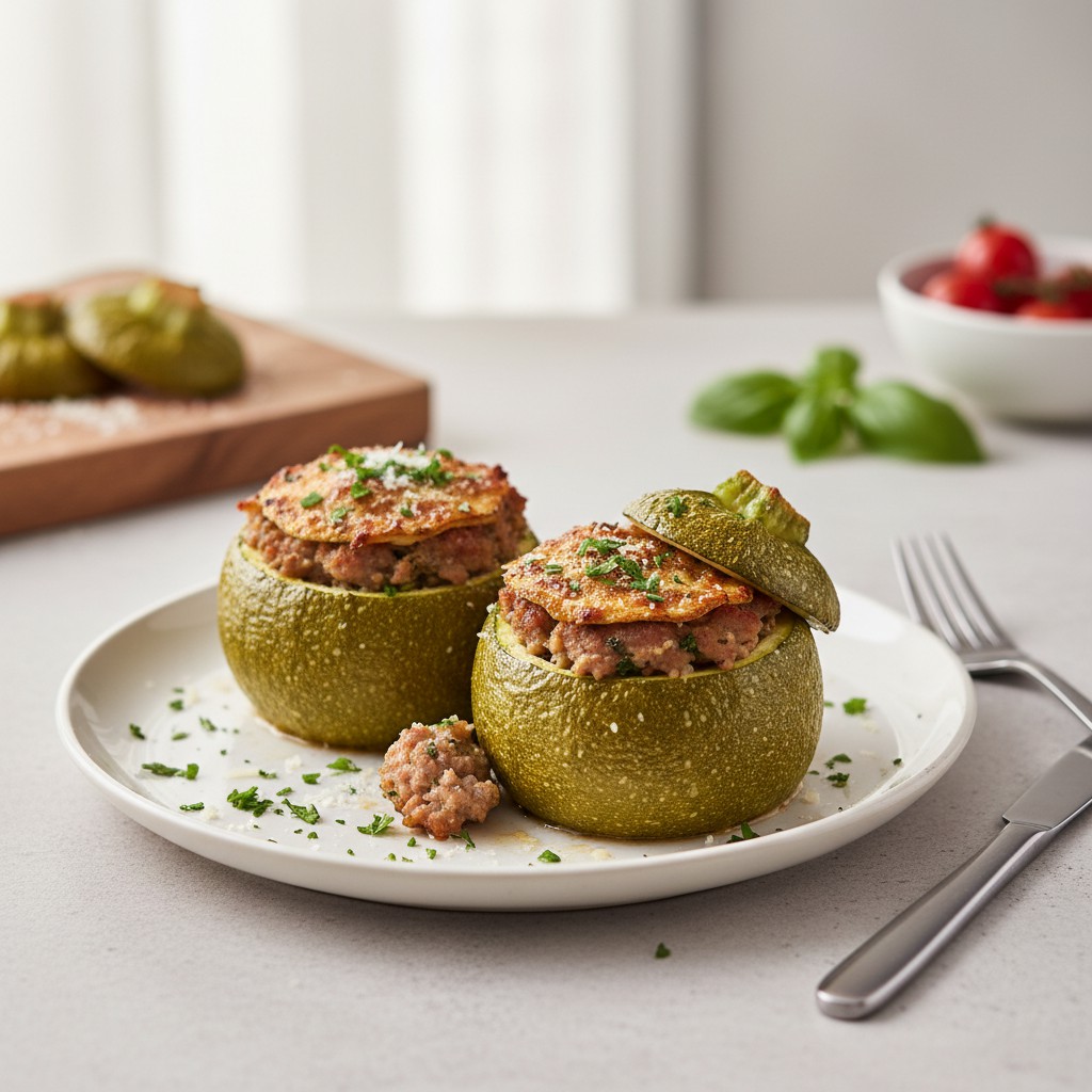 Les courgettes rondes farcies sont un classique de la cuisine familiale méditerranéenne, appréciées pour leur générosité, leur équilibre et leur polyvalence. Cette recette met en valeur la douceur de la courgette, la richesse d’une farce moelleuse et parfumée, et la convivialité d’un plat complet, facile à adapter selon les saisons ou les préférences alimentaires. Traditionnellement préparées dans le sud de la France, elles illustrent l’art d’accommoder les légumes frais avec des ingrédients simples, pour un résultat savoureux, nourrissant et authentique. Ici, chaque étape est expliquée pour garantir une farce juteuse, une courgette fondante et une présentation soignée, tout en proposant des alternatives santé et des conseils de chef pour éviter les pièges courants.