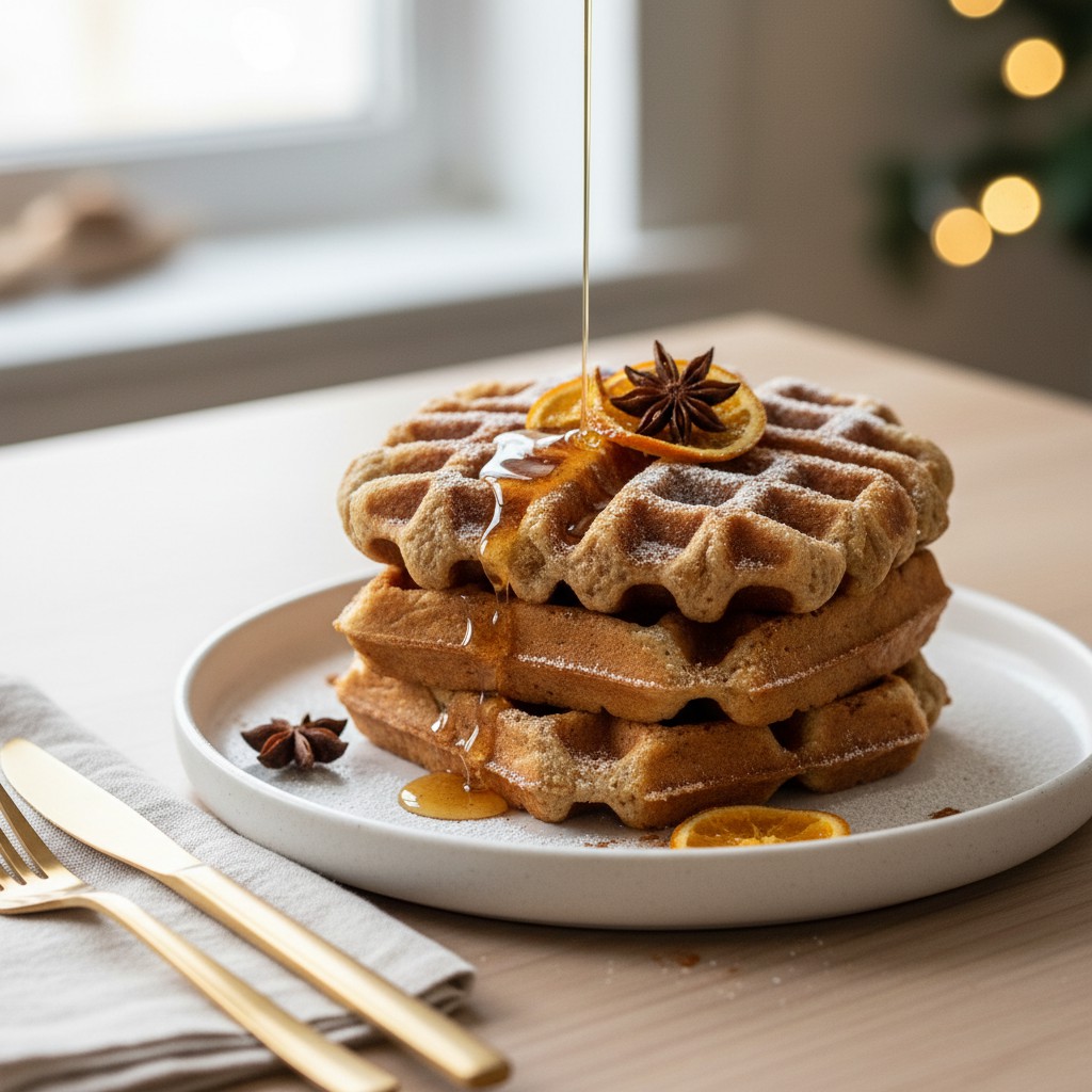 Ces gaufres au pain d’épices allient la texture moelleuse et croustillante de la gaufre à la richesse aromatique des épices traditionnelles (cannelle, gingembre, muscade, clou de girofle). Inspirées des marchés de Noël du nord de l’Europe, elles offrent une alternative originale et chaleureuse aux gaufres classiques. Parfaites pour un goûter d’hiver ou un brunch festif, elles se distinguent par leur parfum envoûtant et leur équilibre nutritionnel : la présence de miel et d’épices permet de réduire la quantité de sucre raffiné, tout en apportant des antioxydants naturels. Cette recette est accessible, mais nécessite de respecter quelques points techniques pour obtenir une gaufre légère et bien dorée. Elle met en valeur la tradition du pain d’épices, dont l’histoire remonte à la Route de la Soie et à l’introduction des épices en Europe au Moyen Âge.
