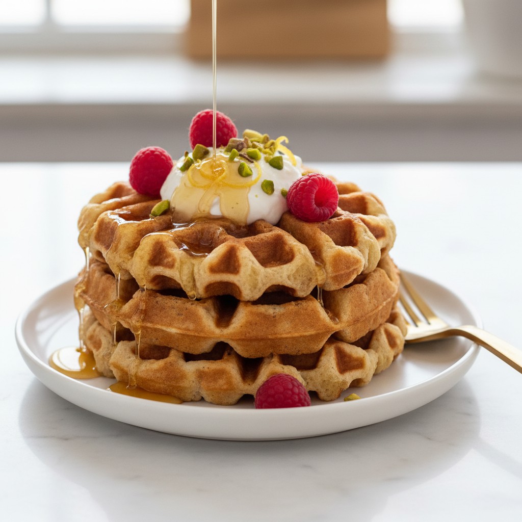 Ces gaufres au yaourt grec et miel allient moelleux, douceur et équilibre nutritionnel. Le yaourt grec apporte une texture aérienne et une légère acidité qui contrebalance la richesse du miel, tout en augmentant la teneur en protéines. Cette recette, inspirée des traditions européennes de la gaufre, revisite le classique en y intégrant des ingrédients méditerranéens pour un résultat plus digeste et savoureux. Idéale pour un petit-déjeuner gourmand ou un brunch, elle se distingue par sa simplicité d’exécution et sa capacité à plaire à tous, sans sacrifier l’équilibre alimentaire.
