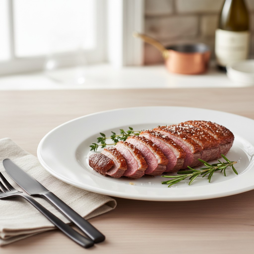 Le magret de canard est un incontournable de la cuisine du Sud-Ouest de la France, apprécié pour sa chair tendre et sa saveur riche. Cette recette met en valeur la simplicité et l’authenticité du produit, tout en garantissant une cuisson maîtrisée pour un résultat juteux et savoureux. Le magret, issu du canard engraissé pour le foie gras, se distingue par sa couche de gras qui, bien travaillée, sublime la viande sans l’alourdir. Cette préparation respecte l’équilibre nutritionnel en limitant l’ajout de matières grasses et en proposant des astuces pour adapter la recette selon vos besoins. Traditionnellement servi rosé, le magret de canard est un plat festif, mais accessible, qui séduit par son goût unique et sa facilité d’exécution lorsqu’on suit les bons gestes.