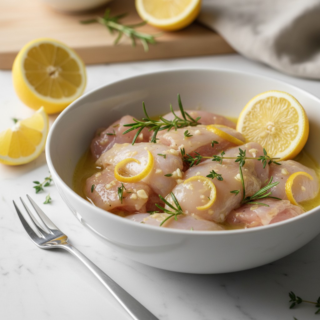 - Texture caoutchouteuse : Ne pas dépasser 4 heures de marinade, l’acidité du citron peut dénaturer les protéines du poulet.