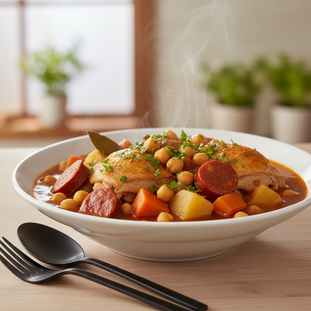 - Astuce chef : Pour une touche authentique, ajoutez un filet d’huile d’olive vierge extra au moment du service et parsemez de persil frais ciselé. Pour une version plus légère, retirez la peau du poulet avant cuisson et privilégiez le chorizo maigre.
