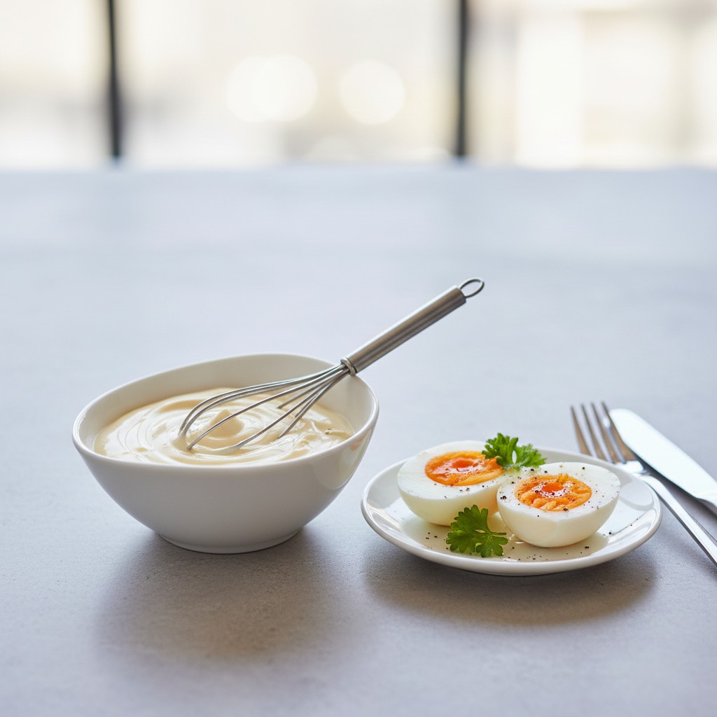 La mayonnaise maison est une émulsion froide à base de jaune d’œuf, de moutarde, d’huile et d’assaisonnement. Incontournable de la cuisine française, elle accompagne crudités, œufs, poissons ou viandes froides. Sa réussite repose sur la maîtrise de l’émulsion et la qualité des ingrédients. Cette recette vous guide pas à pas pour obtenir une mayonnaise onctueuse, stable et savoureuse, tout en expliquant les gestes clés et les erreurs à éviter. Originaire du XVIIIe siècle, la mayonnaise est un pilier de la gastronomie, symbole de la technique culinaire française.
