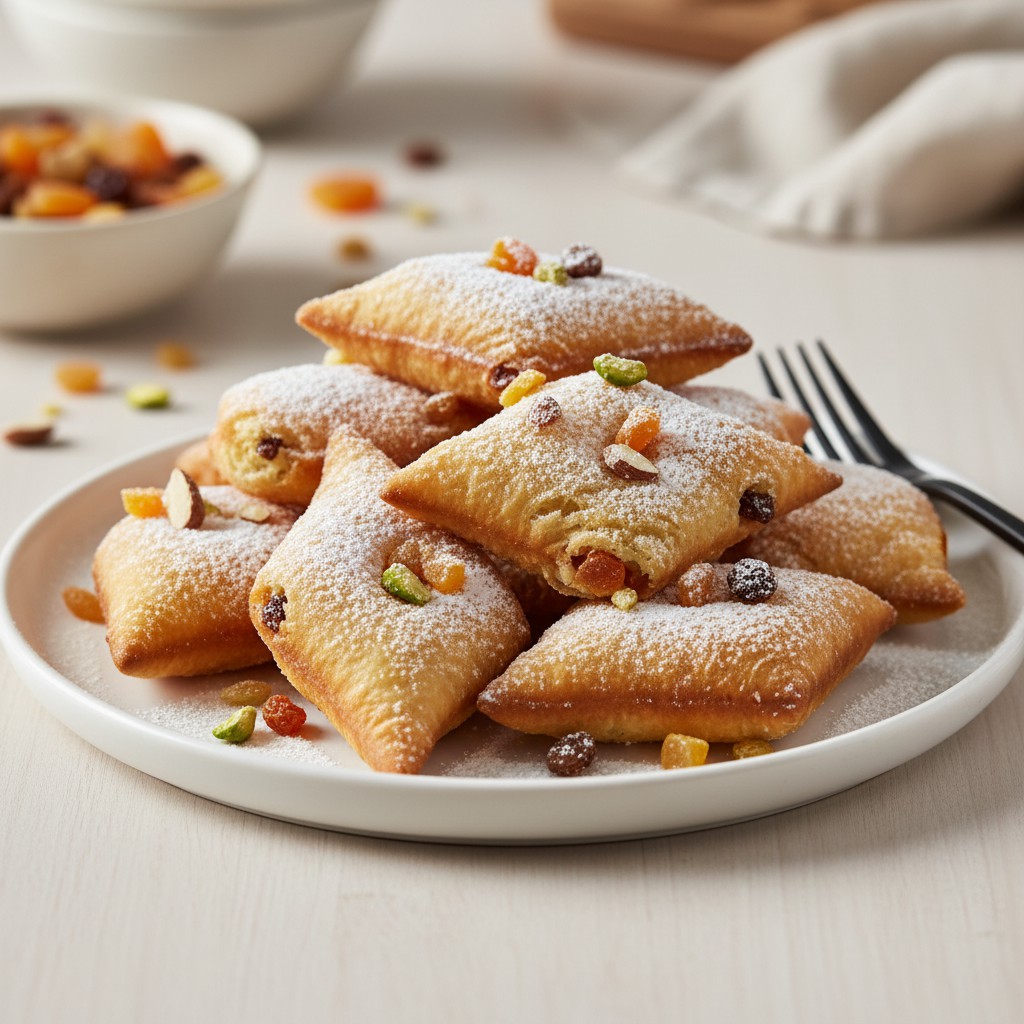 Les merveilles, beignets traditionnels du Sud-Ouest de la France, sont ici revisitées avec l’ajout de fruits secs pour une texture croquante et une saveur subtilement parfumée. Cette recette allie la gourmandise du beignet à la richesse nutritionnelle des fruits secs, tout en restant fidèle à l’esprit festif et convivial de la tradition. Parfaites pour le carnaval ou un goûter généreux, ces merveilles séduisent par leur simplicité d’exécution et leur authenticité. L’ajout de fruits secs (amandes, noisettes, pistaches, raisins…) apporte fibres, minéraux et énergie, tout en évitant l’écueil du beignet trop gras ou trop sucré. Recette accessible, mais nécessitant rigueur sur la texture de la pâte et la gestion de la friture.