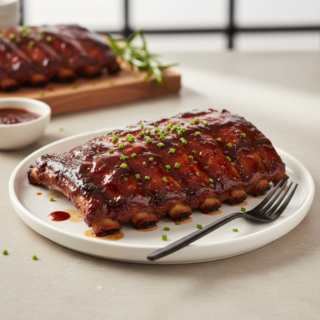 Les ribs de porc au four sont un classique de la cuisine américaine, appréciés pour leur chair tendre et leur goût fumé-sucré. Cette recette propose une cuisson lente et maîtrisée pour obtenir des côtes parfaitement caramélisées, juteuses et savoureuses, sans matériel de fumage. L’équilibre entre épices, sucre et acidité de la marinade permet d’obtenir une viande parfumée, tout en restant accessible et adaptable à différents régimes. Les ribs sont traditionnellement associés aux barbecues du sud des États-Unis, mais cette version au four garantit un résultat fiable, même sans expérience préalable.