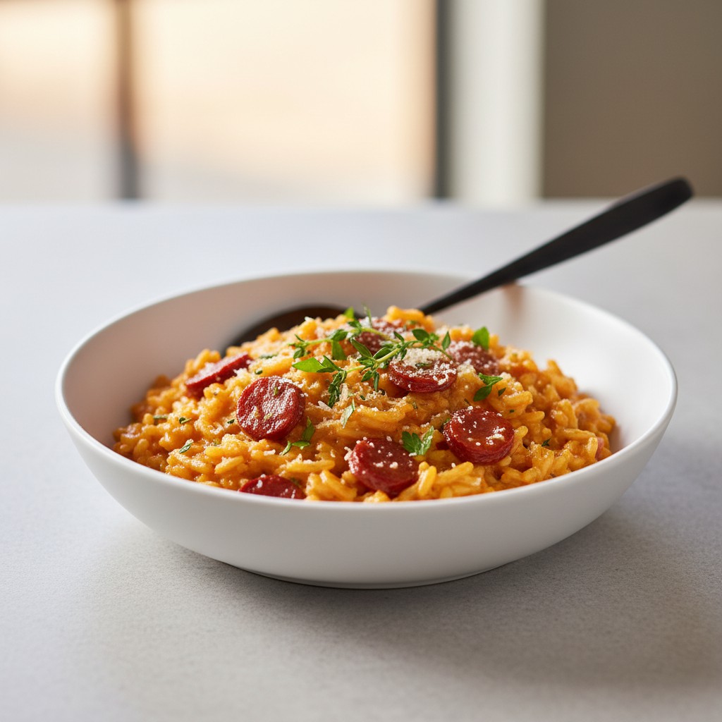 Le risotto chorizo marie la douceur crémeuse du riz italien à la puissance aromatique du chorizo, pour un plat réconfortant et savoureux. Cette recette, d’inspiration italienne mais revisitée avec une touche ibérique, offre un équilibre entre onctuosité, épices et profondeur de goût. Le risotto, plat emblématique du nord de l’Italie, est ici dynamisé par le chorizo, apportant une note fumée et relevée. Accessible à tous, ce plat permet de comprendre l’importance de la maîtrise du bouillon, de la cuisson du riz et de l’incorporation des saveurs. Idéal pour un repas convivial, il se décline facilement en version plus légère ou végétarienne.
