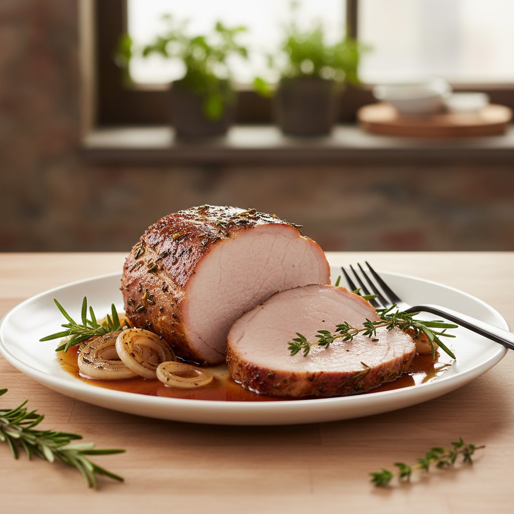 - Découpez en tranches épaisses et servez avec le jus filtré, accompagné de légumes rôtis ou d’une purée maison.