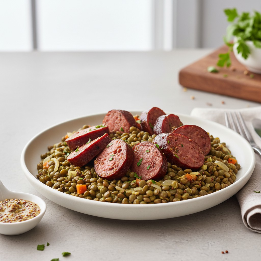 Un classique de la cuisine française du terroir, la saucisse fumée poêlée accompagnée de lentilles à la moutarde offre un équilibre parfait entre rusticité, gourmandise et nutrition. Ce plat, emblématique des régions de l’Est et du Massif central, met en valeur la profondeur aromatique de la saucisse fumée, la douceur des lentilles et la vivacité de la moutarde. Idéal pour un repas complet, rassasiant et accessible, il se distingue par sa simplicité technique et sa capacité à régaler sans excès de matières grasses. L’association légumineuse-charcuterie, bien maîtrisée, permet d’obtenir un plat riche en protéines, fibres et saveurs authentiques.