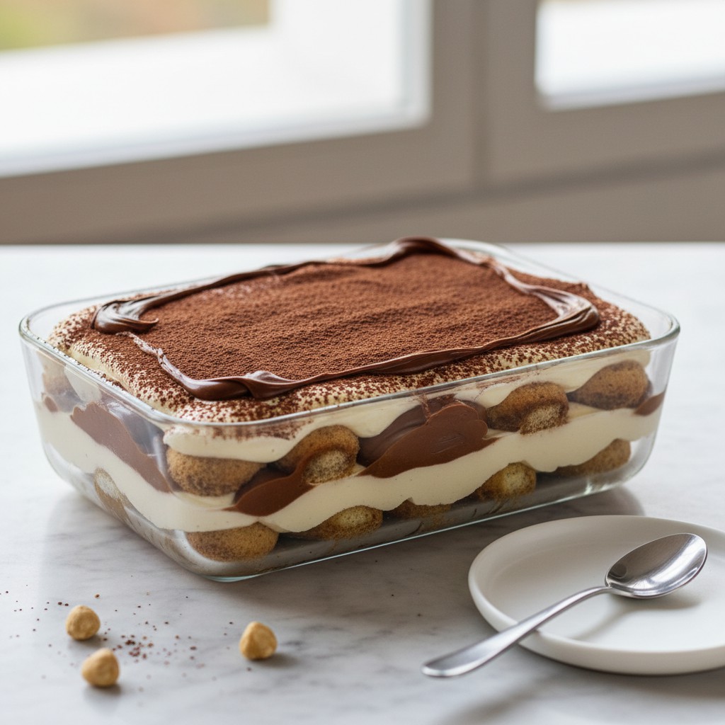 Le tiramisu au Nutella revisite le classique italien en y intégrant la célèbre pâte à tartiner, pour une alliance gourmande de mascarpone, café et chocolat-noisette. Cette version conserve l’équilibre entre douceur, onctuosité et légèreté, tout en apportant une touche moderne et accessible. Originaire du nord de l’Italie, le tiramisu est traditionnellement un dessert de partage, convivial et adaptable. Ici, le Nutella apporte une note régressive et séduira petits et grands, sans sacrifier la texture aérienne ni l’harmonie des saveurs. Recette pensée pour garantir un résultat fiable, même pour une première réalisation.