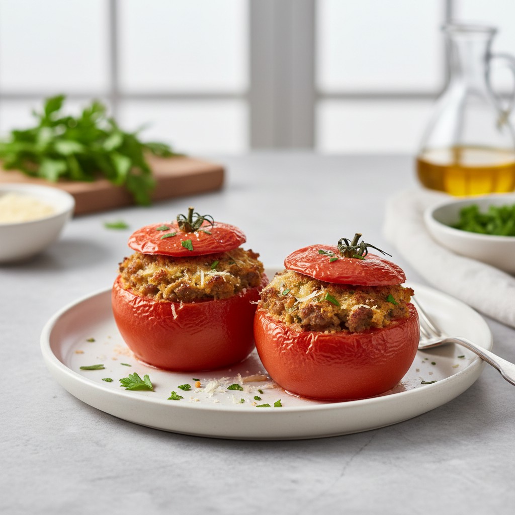 Les tomates farcies sont un classique de la cuisine familiale française, appréciées pour leur générosité et leur équilibre entre légumes et protéines. Cette recette, ancrée dans la tradition paysanne, met en valeur la tomate mûre garnie d’une farce savoureuse à base de viande, d’herbes et parfois de riz. Elle offre un plat complet, convivial et personnalisable, parfait pour un repas équilibré. L’accent est mis ici sur la justesse de la cuisson, la maîtrise de la texture et l’assaisonnement, pour garantir une farce moelleuse et des tomates fondantes sans excès d’eau.