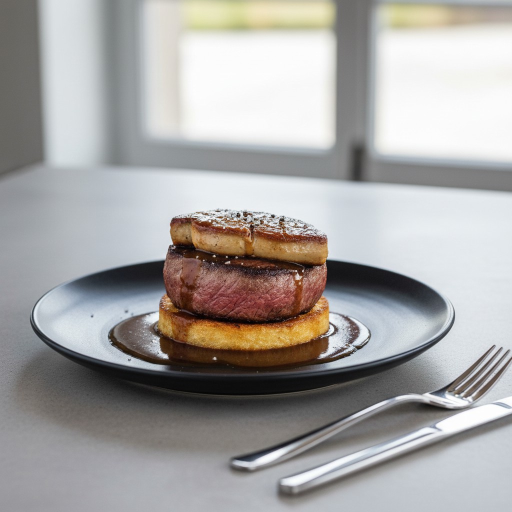 - Conseil de chef : Utilisez une poêle bien chaude pour saisir la viande et le foie gras, sans les déplacer pendant la coloration. Pour alléger la recette, vous pouvez opter pour un pain complet légèrement toasté et réduire la quantité de beurre. Accompagnez de légumes verts pour l’équilibre nutritionnel.