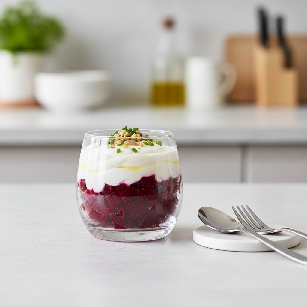 La verrine de betterave est une entrée fraîche et colorée, emblématique de la cuisine contemporaine qui valorise la simplicité et la mise en valeur des produits bruts. Cette recette marie la douceur terreuse de la betterave à la fraîcheur d’un fromage blanc légèrement citronné, pour un équilibre parfait entre goût, texture et nutrition. Originaire de la tendance des verrines apparue en France dans les années 2000, elle s’inspire des apéritifs modernes où la présentation individuelle sublime la dégustation. Accessible, rapide et saine, cette verrine met en avant la richesse en fibres, antioxydants et vitamines de la betterave, tout en offrant une alternative légère aux entrées plus riches.