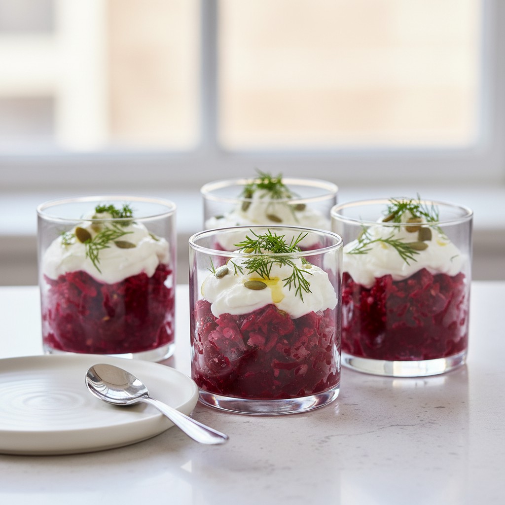 Les verrines de betteraves sont une entrée fraîche et colorée, idéale pour éveiller l’appétit tout en apportant une touche de douceur terreuse et une belle vivacité visuelle. Cette recette, d’inspiration contemporaine, met en valeur la betterave, légume racine traditionnellement consommé en Europe de l’Est et en France, ici twistée en version moderne et légère. L’association avec un fromage frais apporte équilibre et onctuosité, tandis que quelques touches d’herbes fraîches relèvent l’ensemble. Facile à préparer, cette recette est aussi intéressante sur le plan nutritionnel : riche en fibres, en antioxydants et modérée en matières grasses, elle convient à une alimentation équilibrée. Les astuces de chef vous permettront d’obtenir une texture parfaite et une présentation élégante, tout en évitant les pièges classiques (excès d’eau, manque d’assaisonnement, monotonie en bouche).