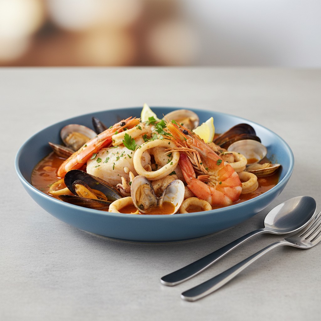 La zarzuela est un ragoût espagnol originaire de Catalogne, célébré pour sa richesse en poissons et fruits de mer, mijotés dans une sauce parfumée au safran, tomate et amandes. Plat de fête par excellence, il incarne la générosité méditerranéenne, alliant textures et saveurs marines. Cette recette, accessible mais exigeante sur la qualité des produits, met en avant l’équilibre entre la puissance iodée des fruits de mer et la douceur de la sauce. Elle se distingue par sa capacité à sublimer des ingrédients simples grâce à des gestes précis et une cuisson maîtrisée. Idéale pour un repas convivial, elle offre un excellent apport en protéines, oméga-3 et micronutriments, tout en restant modérée en matières grasses si l’on dose l’huile d’olive avec justesse.