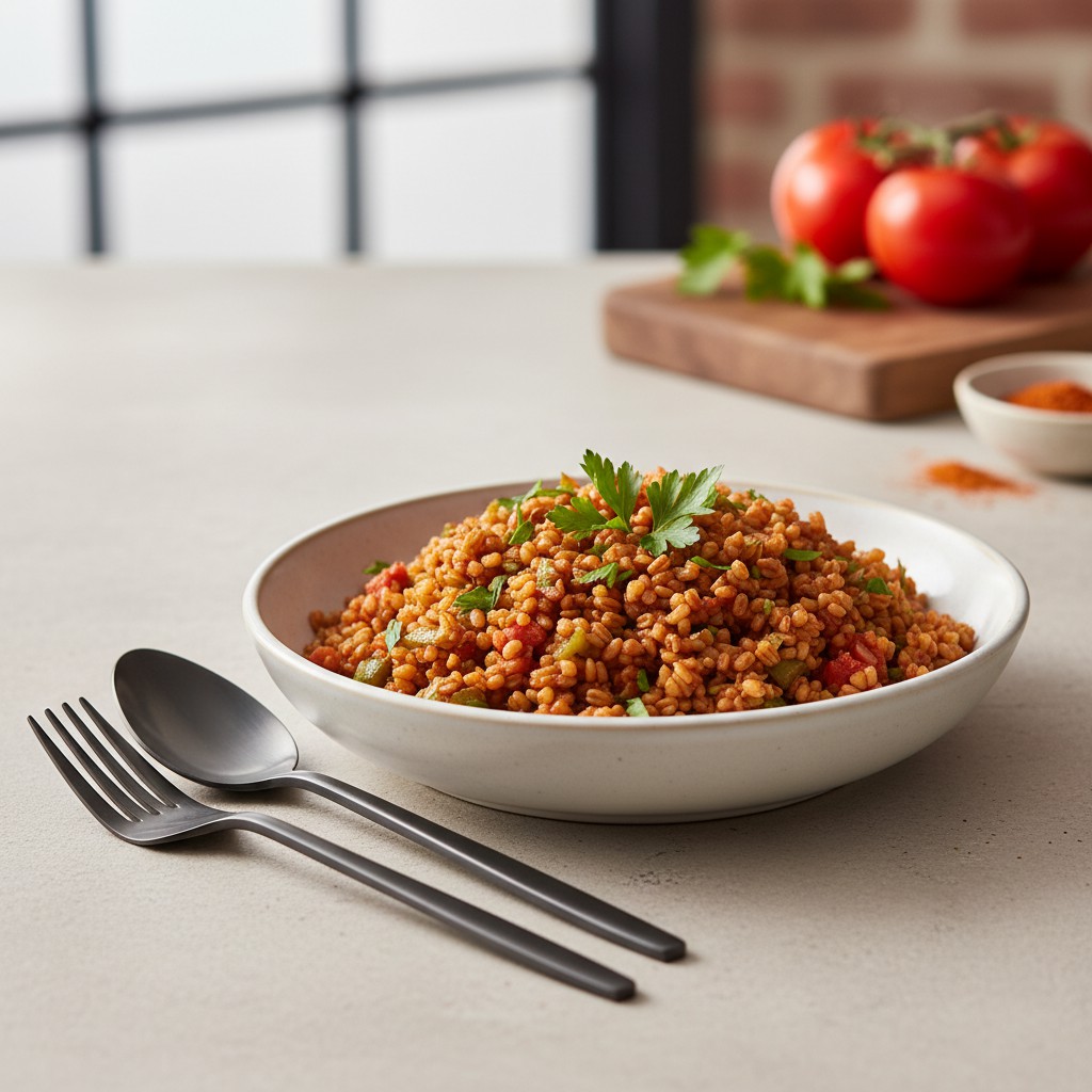 Le boulgour turc, ou ‘bulgur pilavı’, est un pilaf de boulgour emblématique de la cuisine anatolienne. Il se distingue par sa simplicité, sa richesse aromatique et son équilibre nutritionnel : céréale complète, légumes, huile d’olive et épices douces. Ce plat accompagne traditionnellement viandes grillées, poissons ou se savoure en plat principal végétarien. Sa réussite repose sur la maîtrise de la cuisson du boulgour, pour obtenir des grains moelleux mais distincts, et sur l’assaisonnement juste. Accessible, rassasiant et sain, il incarne la convivialité des tables turques.